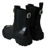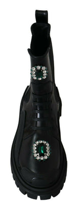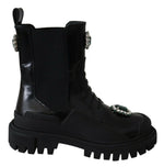 Dolce & Gabbana Black Leather Crystal Combat Boots