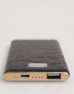 Dolce & Gabbana Black Leather Embossed Exotic 3000mAh Power Bank Charger USB