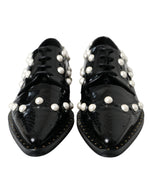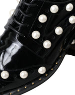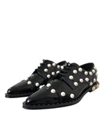 Dolce & Gabbana Black Leather Faux Pearl Dress Broque Shoes