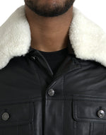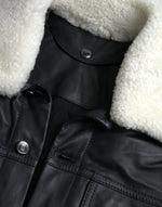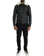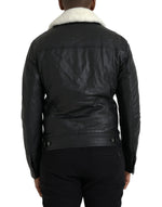 Dolce & Gabbana Black Leather Fur Collar Biker Coat Jacket