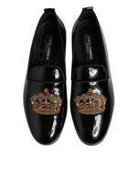 Dolce & Gabbana Black Leather Gold Crown Mens Loafers Shoes