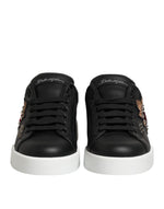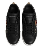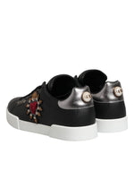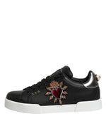 Dolce & Gabbana Black Leather Heart Embellished Sneakers Shoes