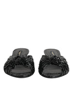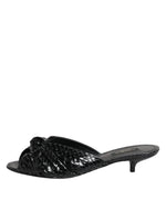 Dolce & Gabbana Black Leather Heels Slides Sandals Shoes