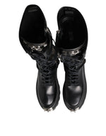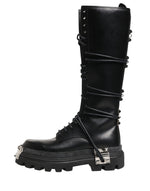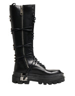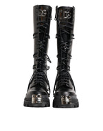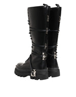 Dolce & Gabbana Black Leather Knee High Combat Boots Shoes