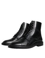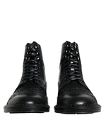 Dolce & Gabbana Black Leather Lace Up Mid Calf Boots Shoes