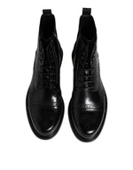 Dolce & Gabbana Black Leather Lace Up Mid Calf Boots Shoes