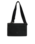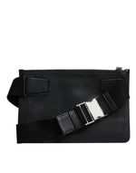 Dolce & Gabbana Black Leather Logo Embossed Waist Fanny Pack Borse Bag