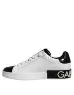 Dolce & Gabbana Black Leather Logo Portofino Sneaker Shoes