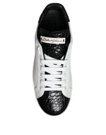 Dolce & Gabbana Black Leather Logo Portofino Sneaker Shoes