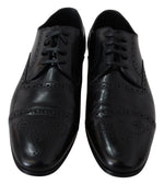 Dolce & Gabbana Black Leather Men Derby Formal Loafers Shoes
