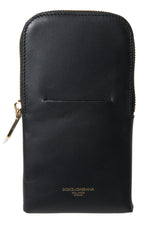 Dolce & Gabbana Black Leather Men Purse Double Belt Strap Bracelet Bag