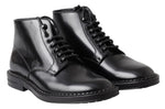 Dolce & Gabbana Black Leather Men Short Boots Lace Up Shoes