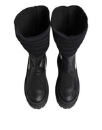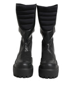 Dolce & Gabbana Black Leather Mid Calf Biker Boots Shoes