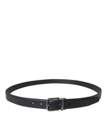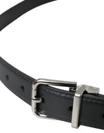 Dolce & Gabbana Black Leather Silver Metal Buckle Men Belt