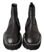 Dolce & Gabbana Black Leather Slip on Stretch Boots