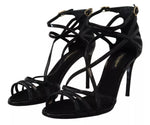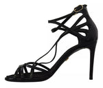Dolce & Gabbana Black Leather Stiletto Heels Sandals Shoes