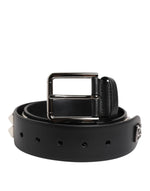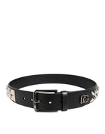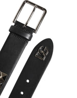 Dolce & Gabbana Black Leather Studded DG Metal Buckle Belt