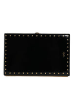 Dolce & Gabbana Black Leather Studs Gold Frame Clutch Evening Purse Bag