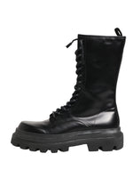 Dolce & Gabbana Black Leather Trek Sole Combat Boots Shoes