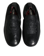 Dolce & Gabbana Black Logo Embroidered Leather Loafer Men Dress Shoes