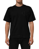 Dolce & Gabbana Black Logo Patch Cotton Men Crew Neck T-shirt