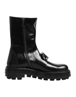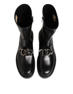 Dolce & Gabbana Black Logo Plaque Mid Calf Biker Boots Shoes