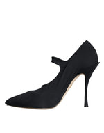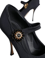 Dolce & Gabbana Black Mary Jane Jersey Crystal Pumps Shoes