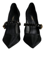 Dolce & Gabbana Black Mesh Mary Jane Crystal Heel Pumps Shoes