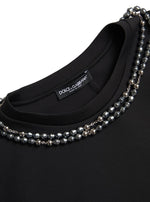 Dolce & Gabbana Black Necklace Embellished Polyester T-shirt