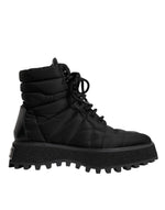 Dolce & Gabbana Black Padded Mid Calf Lace Up Boots Shoes