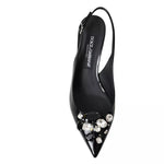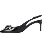 Dolce & Gabbana Black Patent Leather Crystal Slingback Shoes