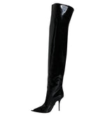 Dolce & Gabbana Black Patent Leather Knee High Boots Shoes