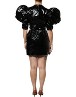 Dolce & Gabbana Black Patent Leather Puff Sleeves Mini Dress