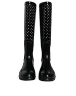 Dolce & Gabbana Black Polka Dot Rubber Knee High Boots Shoes