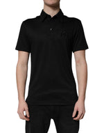 Dolce & Gabbana Black Polyester DG Logo Collared Polo T-shirt