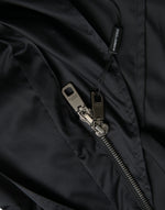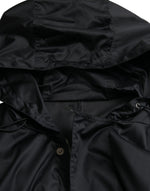 Dolce & Gabbana Black Polyester Hooded Long Windbreaker Jacket