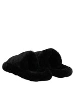 Dolce & Gabbana Black Polyester Velvet Slides Slipper Shoes