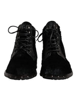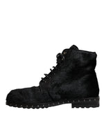 Dolce & Gabbana Black Pony Style Leather Mid Calf Boots Shoes