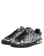 Dolce & Gabbana Black Portofino Stud Embellished Sneakers Shoes