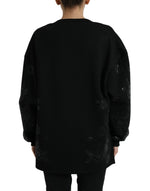Dolce & Gabbana Black Pullover Floral Logo Applique Sweater