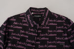 Dolce & Gabbana Black Purple Logo Slim Dress Formal Shirt