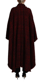 Dolce & Gabbana Black Red Cotton Checkered Over Coat Jacket