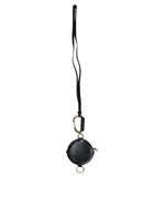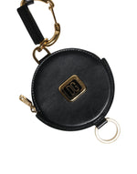 Dolce & Gabbana Black Round Leather DG Logo Coin Purse Lanyard Wallet