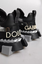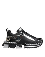 Dolce & Gabbana Black Silver SUPER KING Leather Sneaker Shoes