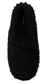 Dolce & Gabbana Black Slip On Ballerina Flats Wool Knit Shoes