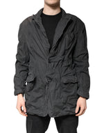 Dolce & Gabbana Black Solid Cotton Collared Coat Jacket