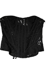 Dolce & Gabbana Black Strapless Floral Lace Bustier Cropped Top