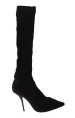 Dolce & Gabbana Black Stretch Socks Knee High Booties Shoes