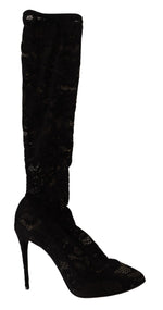 Dolce & Gabbana Black Stretch Socks Taormina Lace Boots Shoes