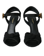 Dolce & Gabbana Black Suede Embellished Heels Sandals Shoes
